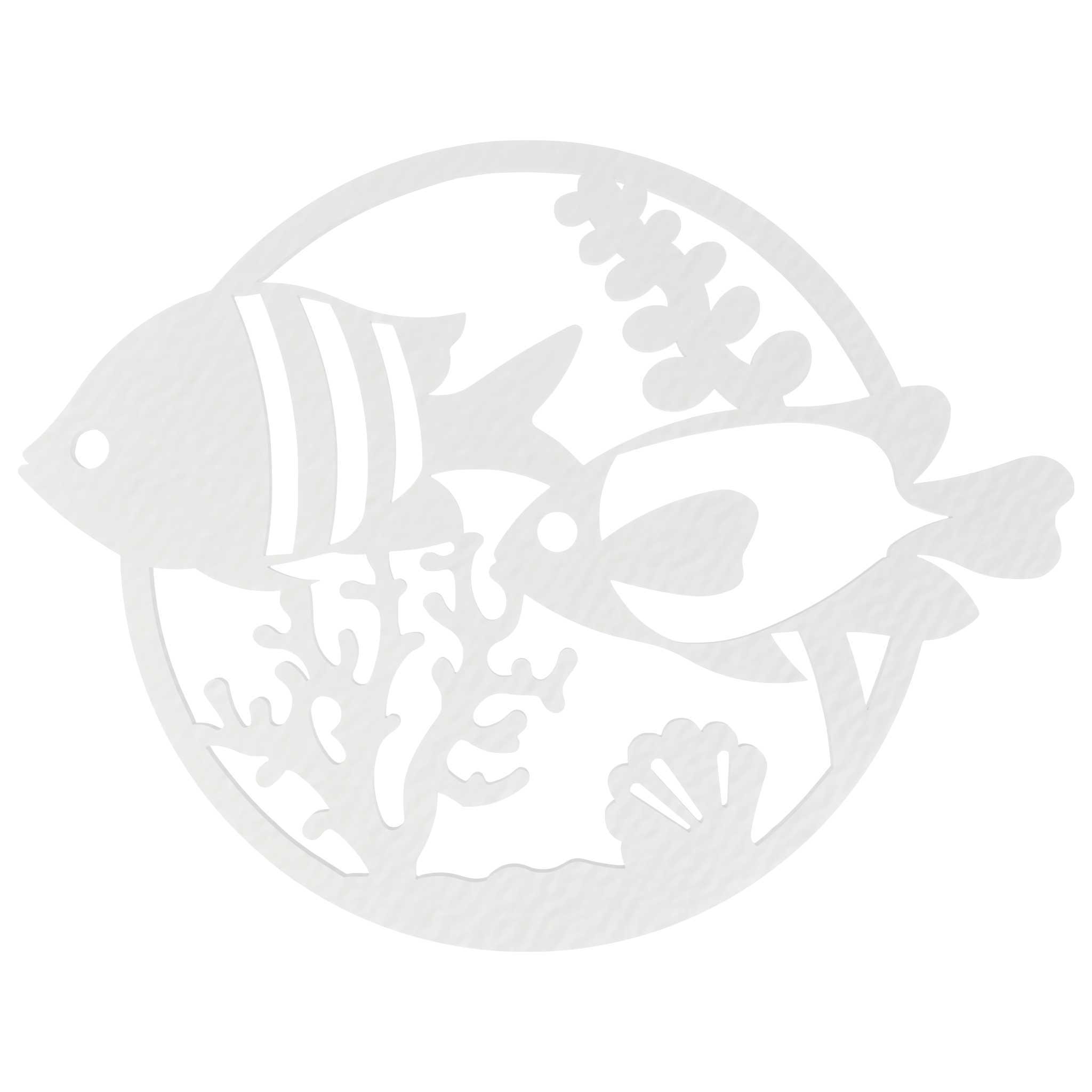 • Wzór: rybki Produkt wykonany z białej płyty HDF ciętej laserowo o grubości 3 mm