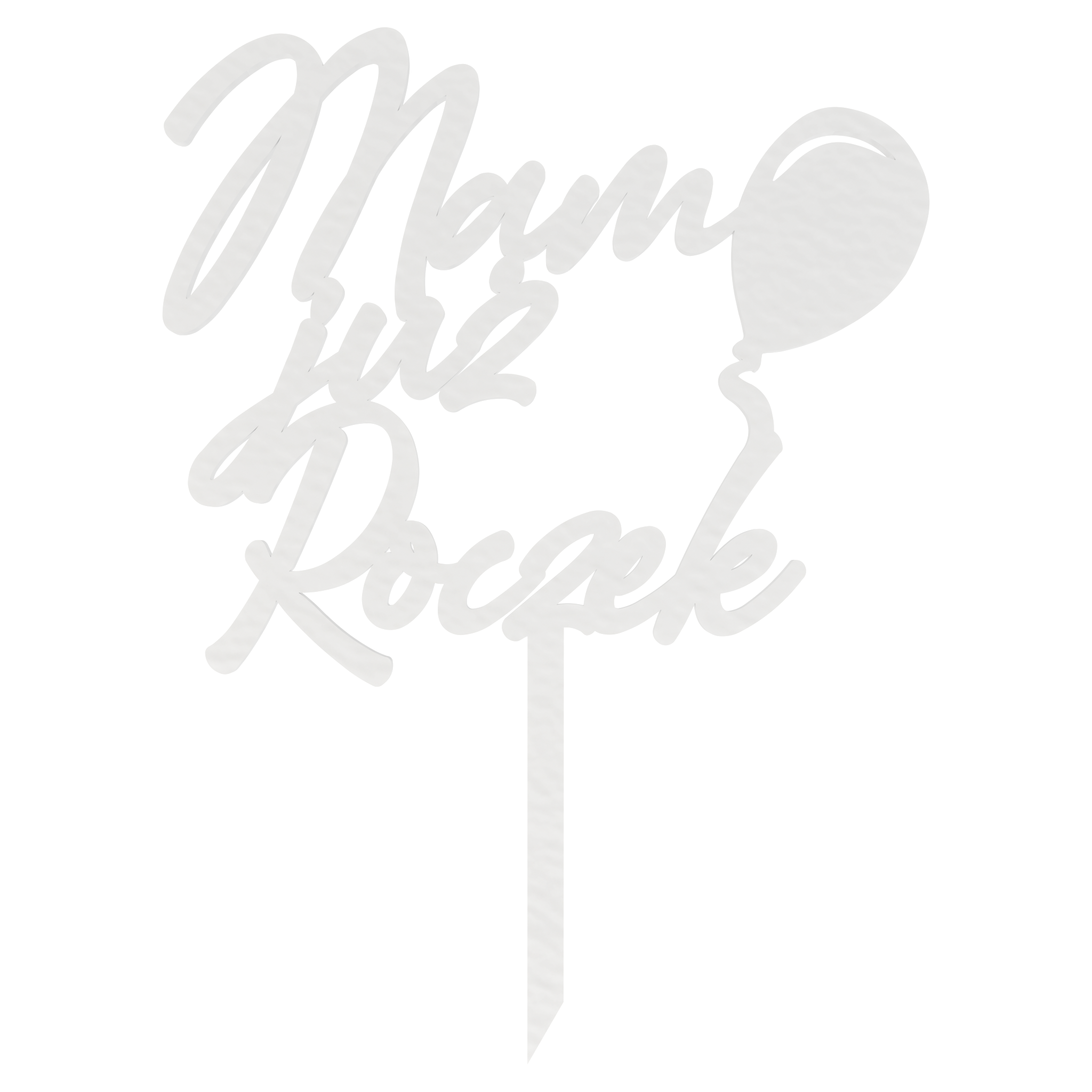 Topper na tort z napisem „Mam już roczek” i uroczym akcentem balonika. Idealny na pierwsze urodziny dziecka. Balonik nadają topperowi wyjątkowego, dziecięcego uroku. Doskonały dodatek do dekoracji urodzinowego tortu, który podkreśli ten wyjątkowy moment w życiu malucha.