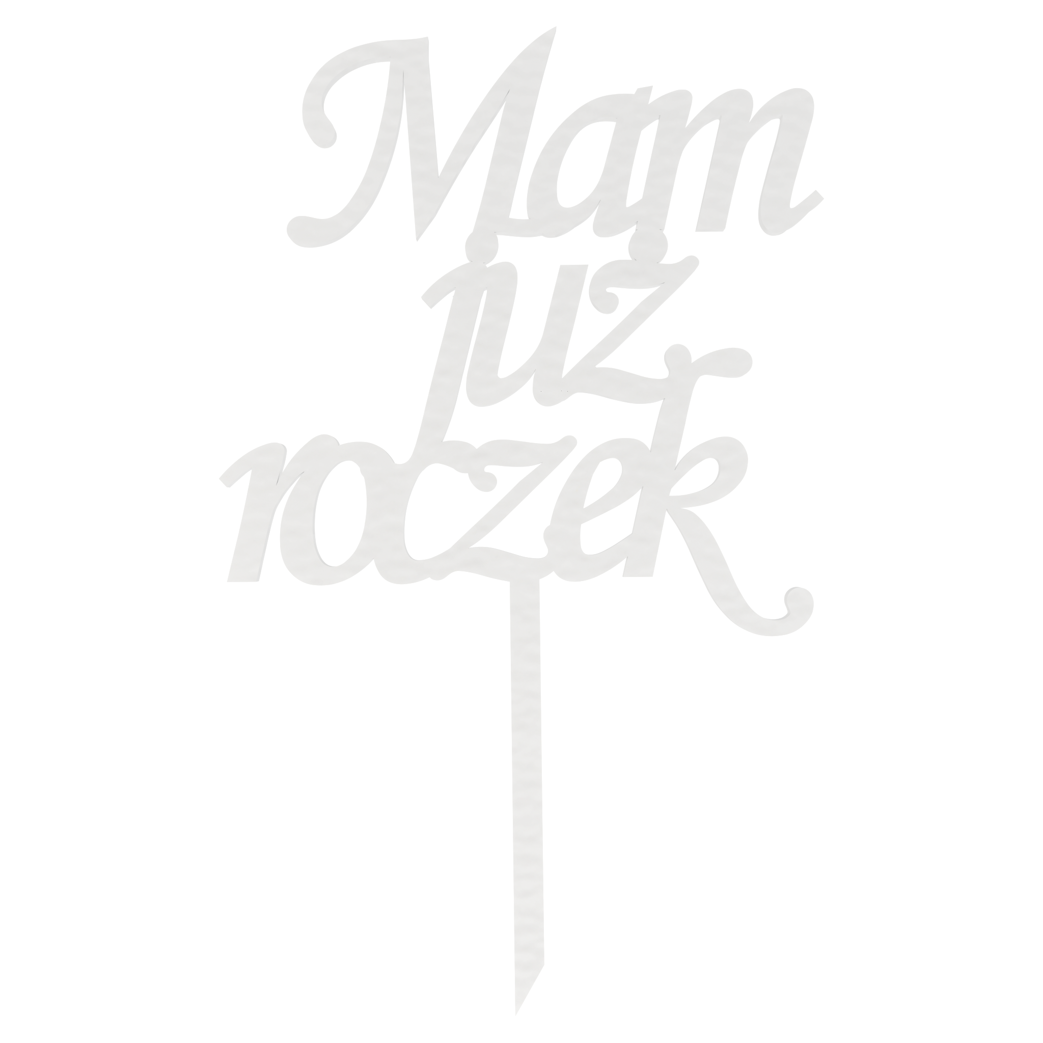 Topper na tort z napisem „Mam już roczek” wykonany w stylowej, ozdobnej czcionce. Idealny wybór na pierwsze urodziny dziecka, dodający klasy i uroku każdej uroczystości. Precyzyjnie wycięta i elegancka czcionka nadają topperowi wyrafinowanego charakteru, jednocześnie zachowując dziecięcą radość. Doskonała dekoracja, która uświetni wyjątkowy tort urodzinowy.
