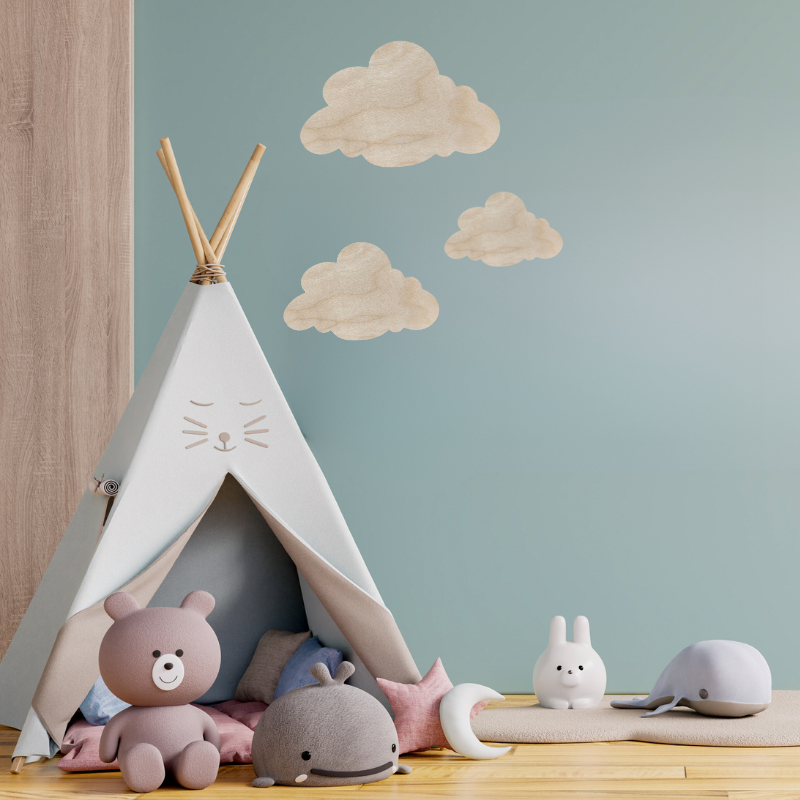 Chmura z drewna sklejki to niezwykły element dekoracyjny, który rozbudzi wyobraźnię każdego dziecka i stworzy magiczną atmosferę w pokoju dziecięcym.
