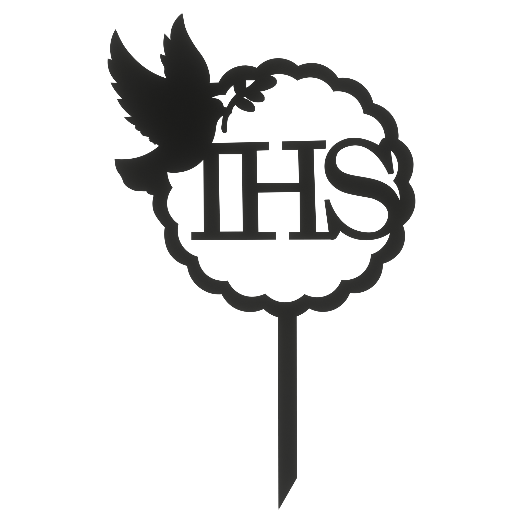 CZARNY TOPPER NA TORT CHRZEST ŚWIĘTY IHS GOŁĄB DEKORACJA DO KWIATÓW TOPER