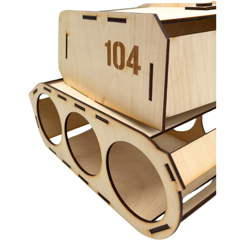 ✅ Dowolny grawer na czołgu zastępujący „WYBUCHOWEGO NAJLEPSZEGO” oraz „104”. Prosimy o podanie napisu bądź przesłanie piktogramu. Czołg wysyłamy w częściach do samodzielnego złożenia, w komplecie klej.