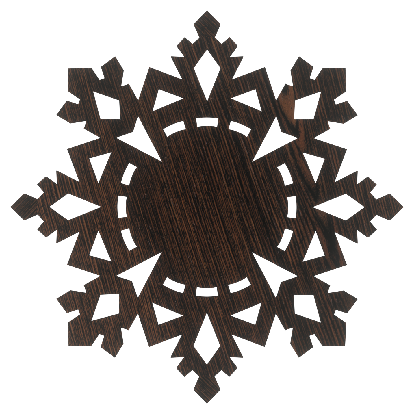 • Produkt wykonany z płyty HDF w kolorze dąb wenge ciętej laserowo o grubości 3 mm