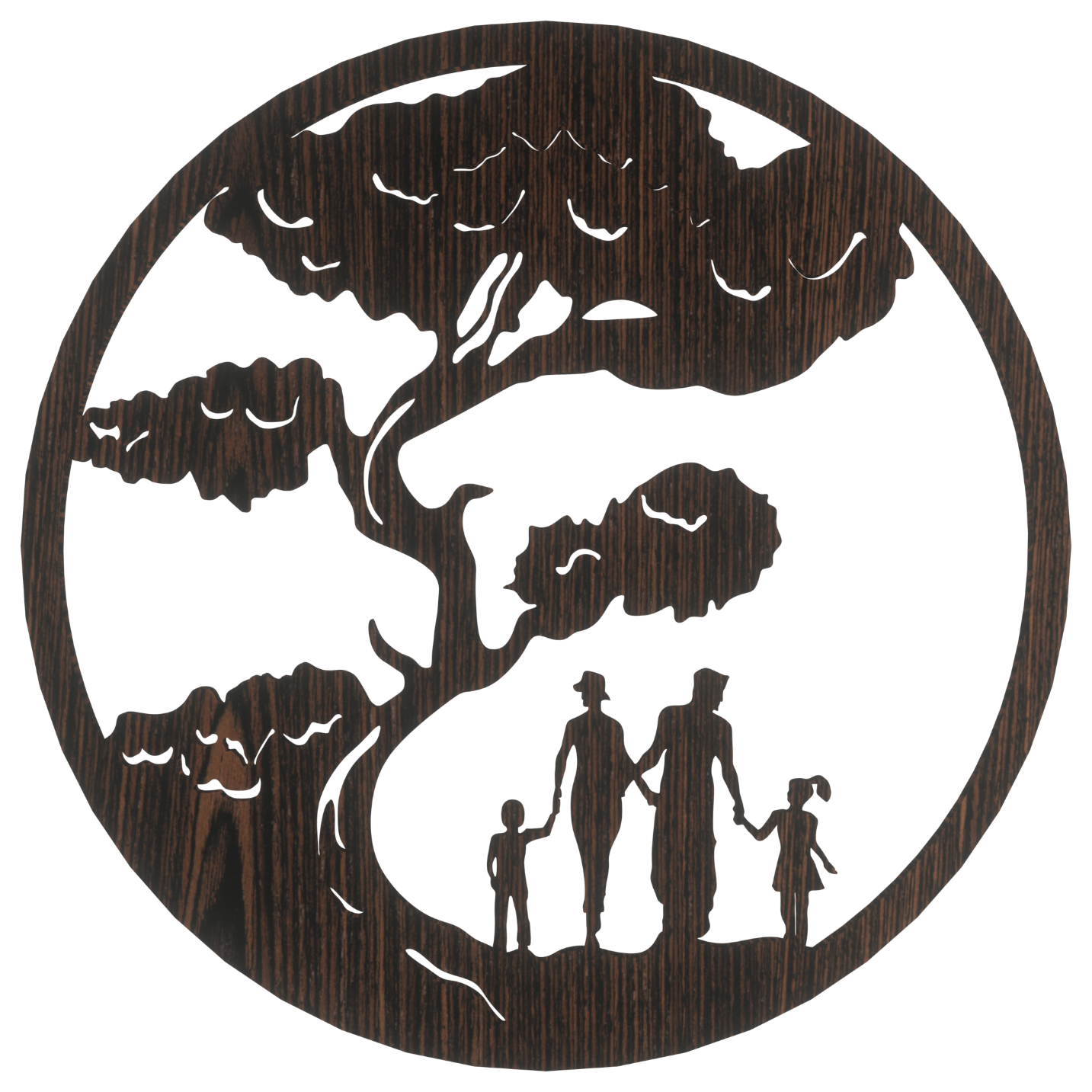 - Produkt wykonany z płyty HDF w kolorze dąb wenge ciętej laserowo o grubości 3 mm