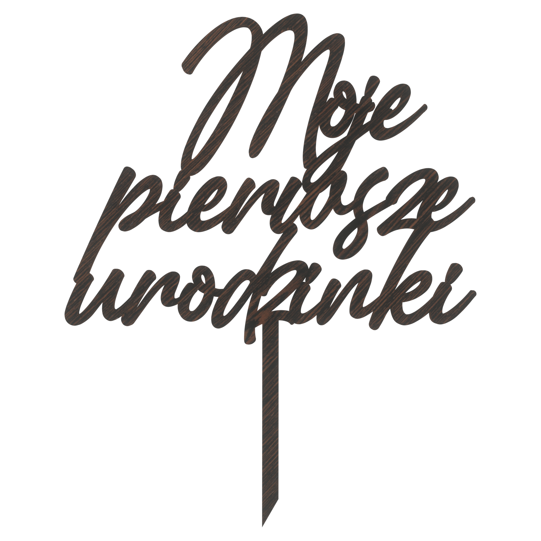 Dzięki okleinie w kolorze dąb wenge, topper pasuje do różnorodnych motywów dekoracyjnych, dodając wyjątkowego uroku i elegancji. Daj swojemu przyjęciu charakteru i ożyw swoje torty czy bukiety z naszym ekskluzywnym topperem.