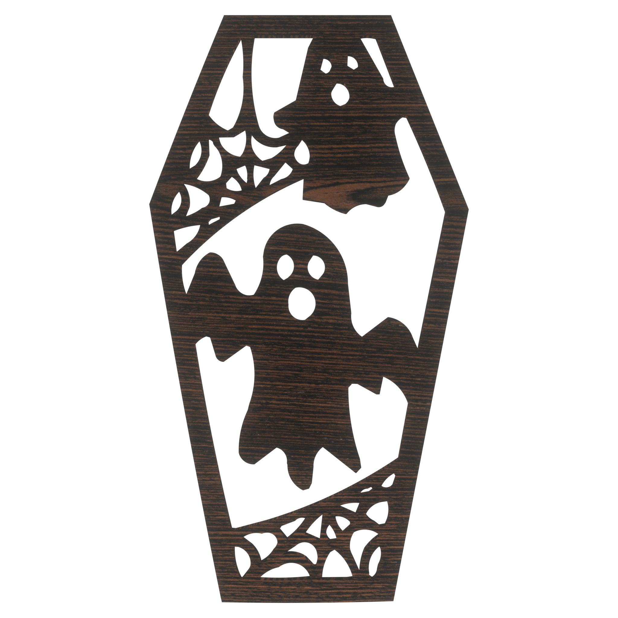 Ozdoba Halloween w kształcie trumny z duchami to tajemniczy i pełen grozy element dekoracyjny. Duchy przedstawiane z delikatnymi, falującymi kształtami, co tworzy wrażenie, że przenikają przez mroczne wieko trumny. Ozdoba idealnie wpisuje się w atmosferę Halloween pełną nadprzyrodzonych zjawisk.