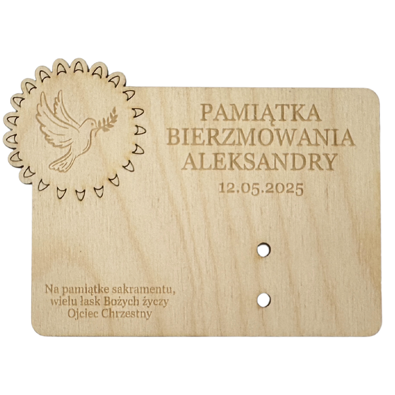 Po zakupie w wiadomości do sprzedająco prosimy o podanie imienia, daty oraz kto przekazuje kartkę. Można również zmienić cel pamiątki chrzest czy pierwsza komunia święta.