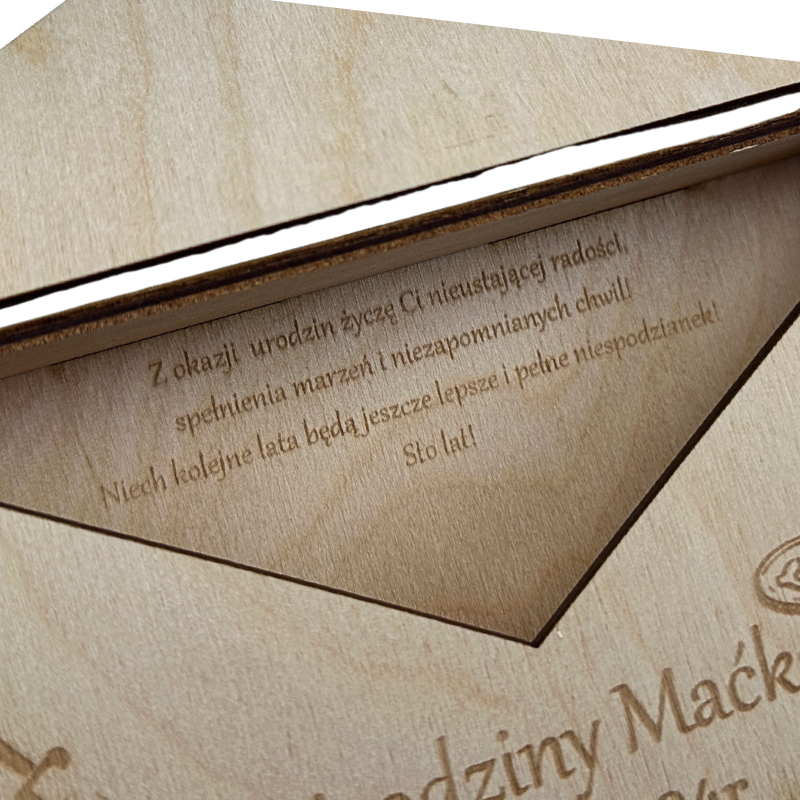 Koperta ze sklejki drewnianej to niezwykle osobisty i elegancki sposób na prezent. Z możliwością personalizacji, staje się wyjątkowym dodatkiem do każdego wydarzenia czy prezentu. Wykonana z naturalnego materiału, koperta emanuje ciepłem i przyjemnością dotyku, jednocześnie zapewniając solidną ochronę dla zawartości. To idealne połączenie funkcjonalności, estetyki i osobistego wyrazu, które sprawia, że każdy przekaz staje się jeszcze bardziej wyjątkowy.⭐️Specyfikacja: