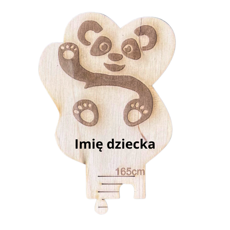DREWNIANA MIARKA WZROSTU NA ŚCIANE PANDA DLA DZIECI IMIĘ PERSONALIZOWANA
