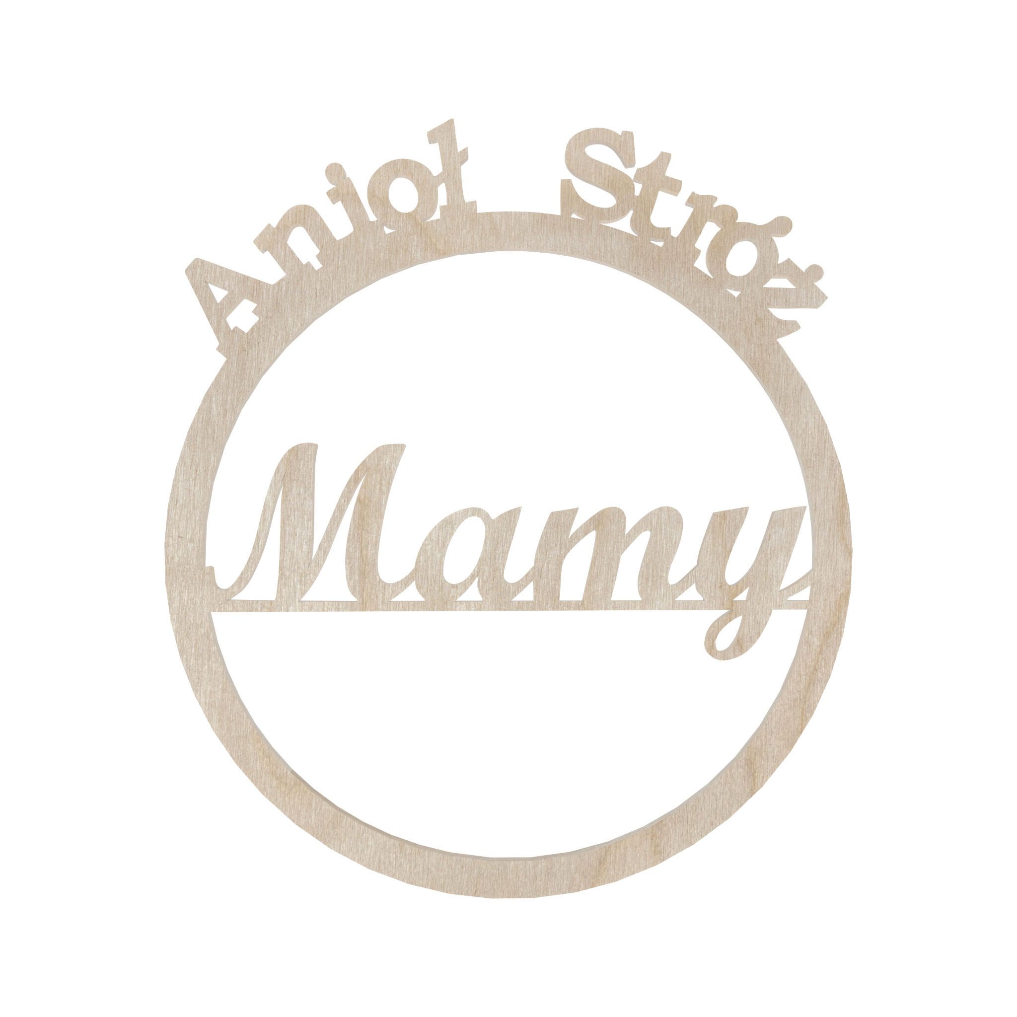 Drewniana obręcz z napisem „Anioł Stróż Mamy”. Idealna do tworzenia unikalnych, ręcznie robionych dekoracji, które wyrażają miłość i troskę.