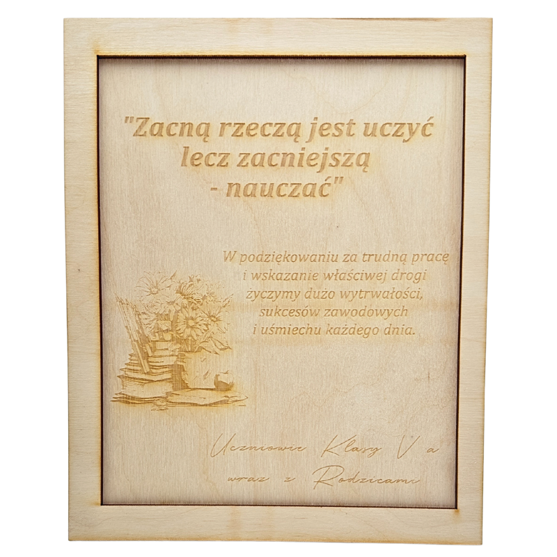 Ramka z drewna sklejki z grawerowanymi gratulacjami lub podziękowaniem to wyjątkowy i personalizowany prezent, który idealnie nadaje się na różne okazje, takie jak śluby, jubileusze czy urodziny. Wykonana z wysokiej jakości sklejki, ramka ma naturalny, elegancki wygląd. Grawerowanie laserowe dodaje jej unikalności, umożliwiając umieszczenie dowolnej wiadomości, daty, imienia czy specjalnego cytatu. To piękna pamiątka, która nie tylko pełni funkcję dekoracyjną, ale także wyraża wdzięczność i ciepłe uczucia w subtelny i trwały sposób.