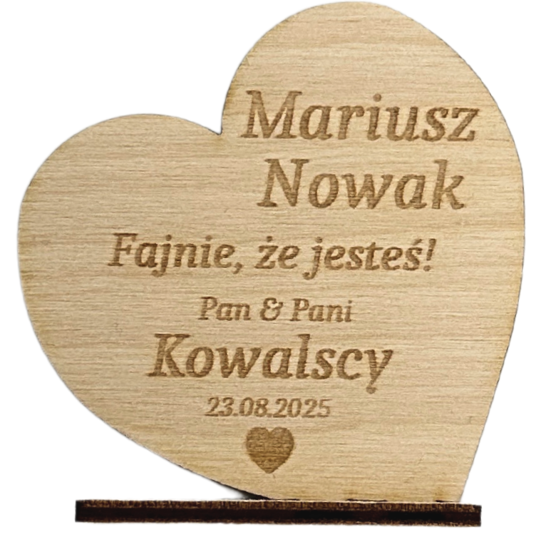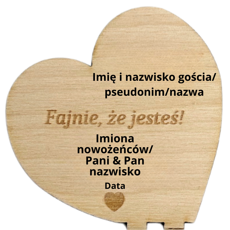 Po zakupie prosimy o podanie imion nowożeńców bądź nazwiska, daty ślubu oraz imienia i nazwiska/pseudonimu lub nazwy np.: Mama Pani Młodej w wiadomości dla sprzedającego. „Fajnie, że jesteś!” możemy również zmienić na Twoją propozycję 🙂