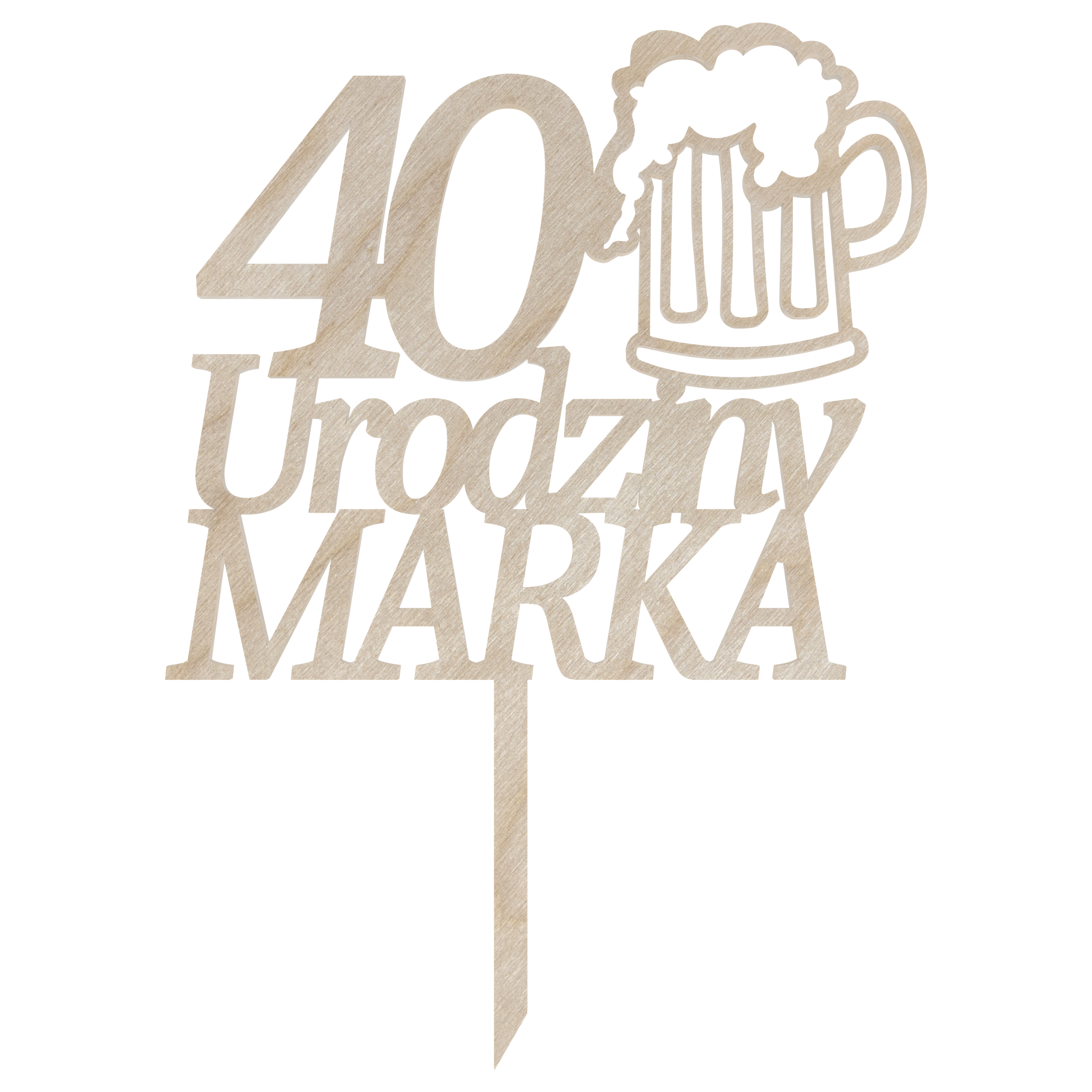DREWNIANY TOPPER NA TORT URODZINY DO KWIATY KUFEL PIWO PIWKO DOWOLNE IMIĘ