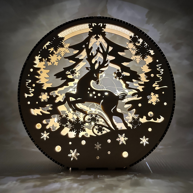 Dekoracyjna lampka świąteczna w stylu 3D, która wprowadzi do twojego domu magiczną atmosferę. Choinka i renifer to tradycyjny obraz Świąt Bożego Narodzenia. Lampka emituje ciepło, przytulne światło, która jest idealna na świąteczne wieczory.