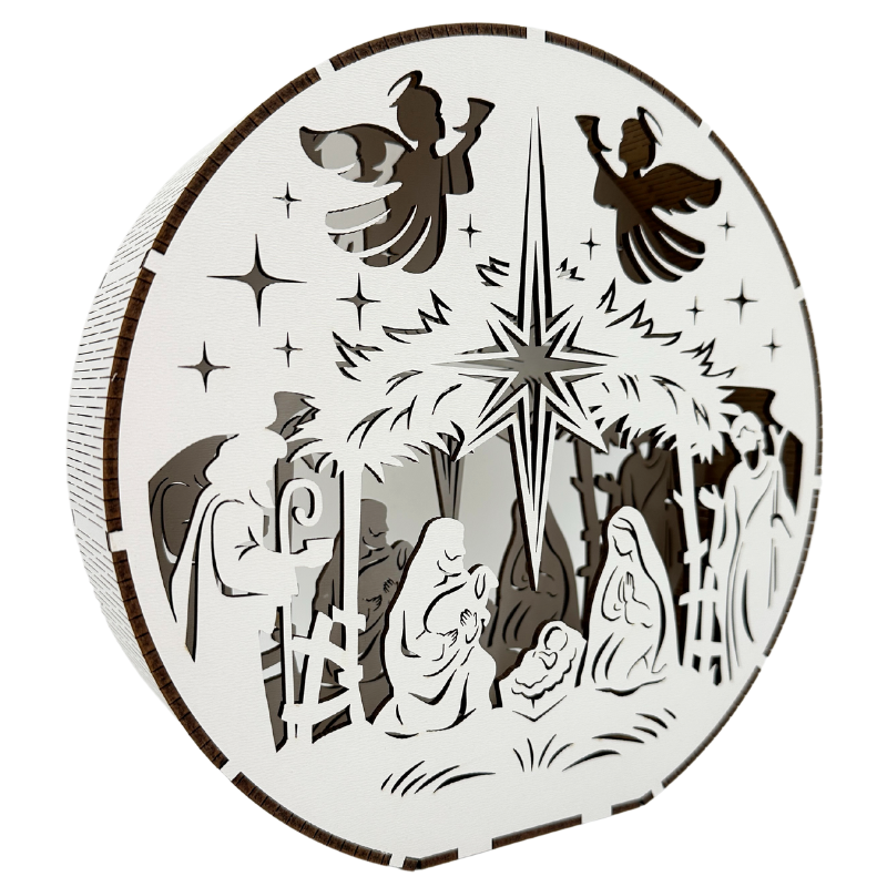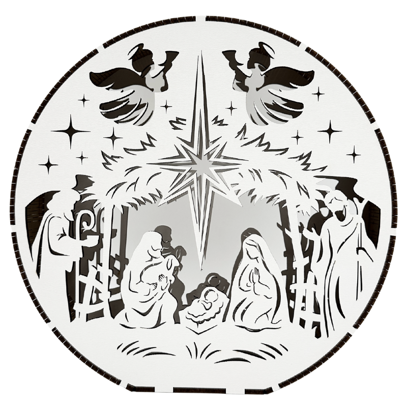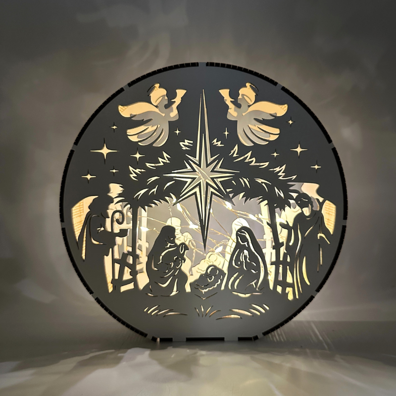 Dekoracyjna lampka świąteczna w stylu 3D, która wprowadzi do twojego domu magiczną atmosferę. Wizerunek Świętej Rodziny z Maryją, Józefem i Dzieciątkiem Jezus to tradycyjny obraz Świąt Bożego Narodzenia. Lampka emituje ciepło, przytulne światło, która jest idealna na świąteczne wieczory.