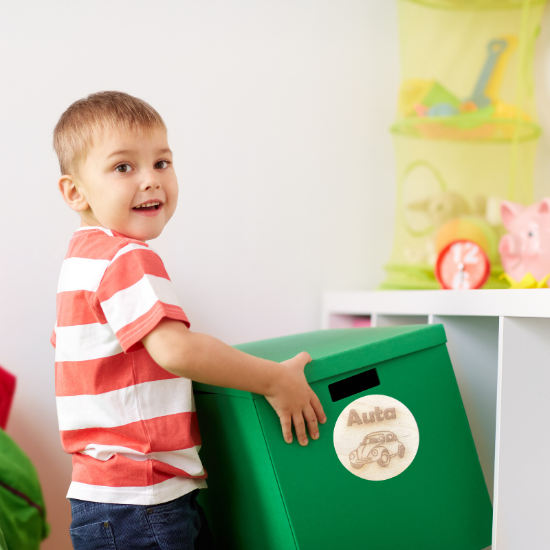 Stylowe plakietki z piktogramami, wykonane z naturalnej drewnianej sklejki, to idealne rozwiązanie do organizacji pojemników, szafek, pudełek i szuflad w pokoju Twojego Malucha. Ich wyjątkowy design w stylu boho doskonale wpasuje się w wnętrze dziecięcego pokoju, dodając mu uroku i charakteru.