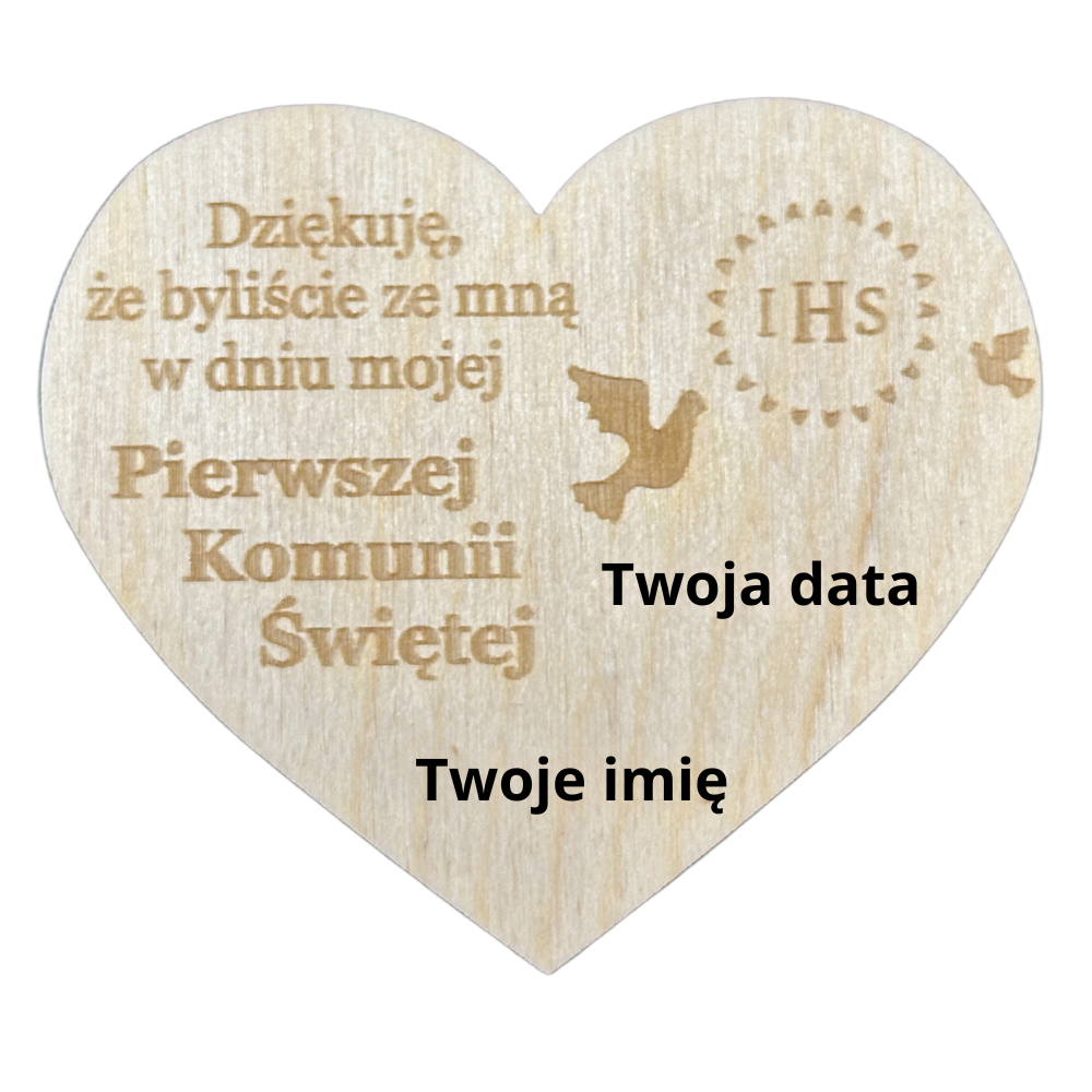 PODZIĘKOWANIE DLA GOŚCI MAGNES SERCE PIERWSZA KOMUNIA PERSONALIZOWANE IMIĘ