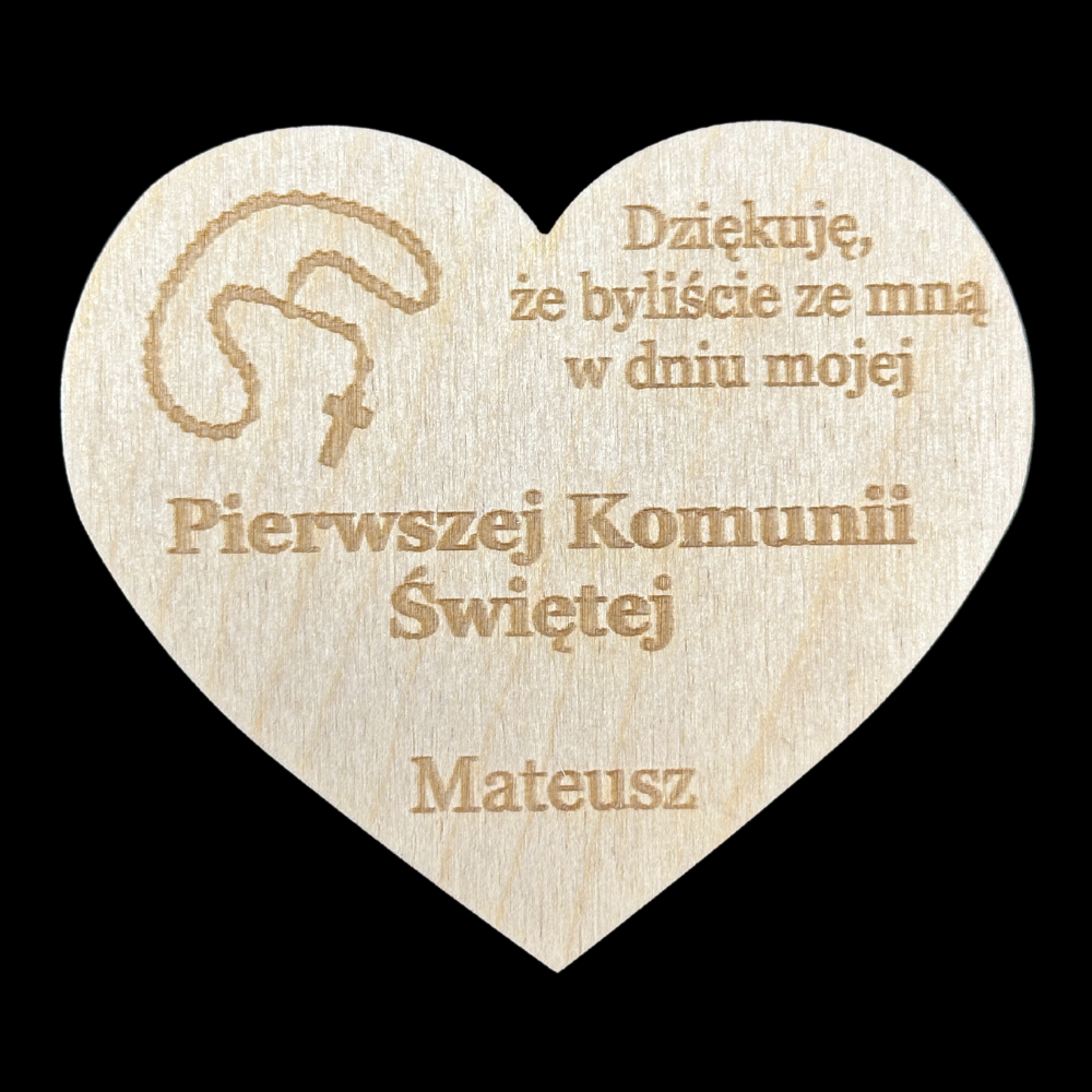 Wyjątkową pamiątką z Pierwszej Komunii Świętej są nasze personalizowane serduszka z drewna sklejki – a przy tym są to magnesy! To niezwykły gest wdzięczności dla naszych gości za ich obecność w tym szczególnym dniu. Dodając imię i datę, nadajemy im osobisty charakter, czyniąc prezent jeszcze bardziej pamiątkowym.
