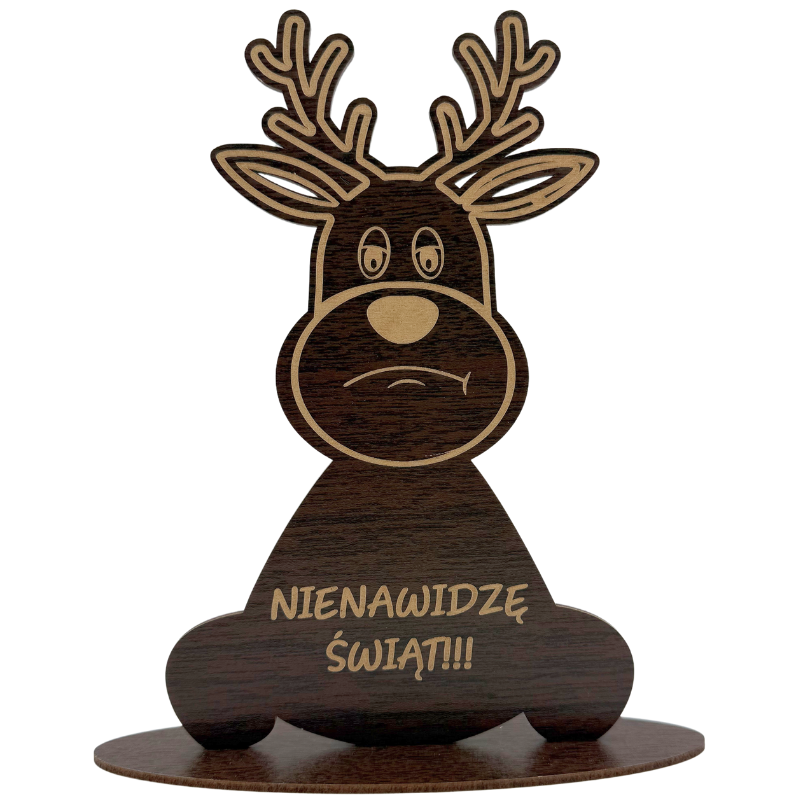 RENIFER NA PODSTAWCE WENGE NIENAWIDZĘ ŚWIĄT DEKORACJA ŚWIĄTECZNA DEKOR ROGI