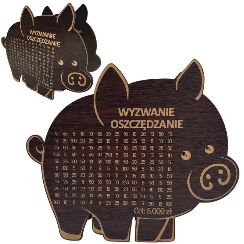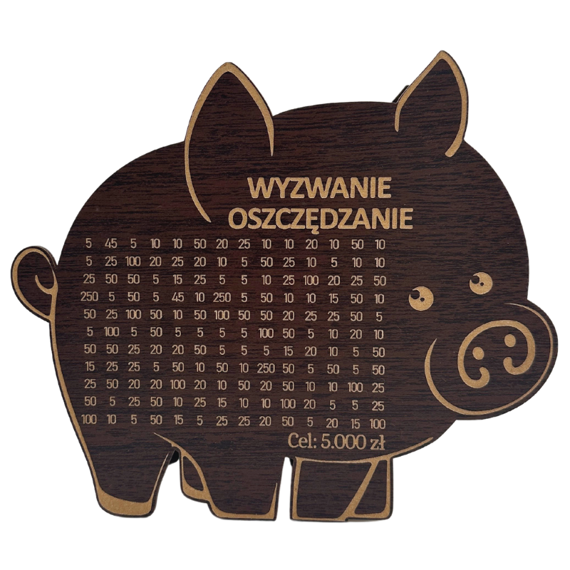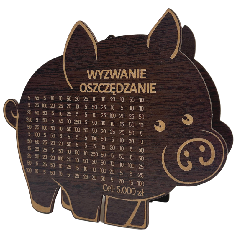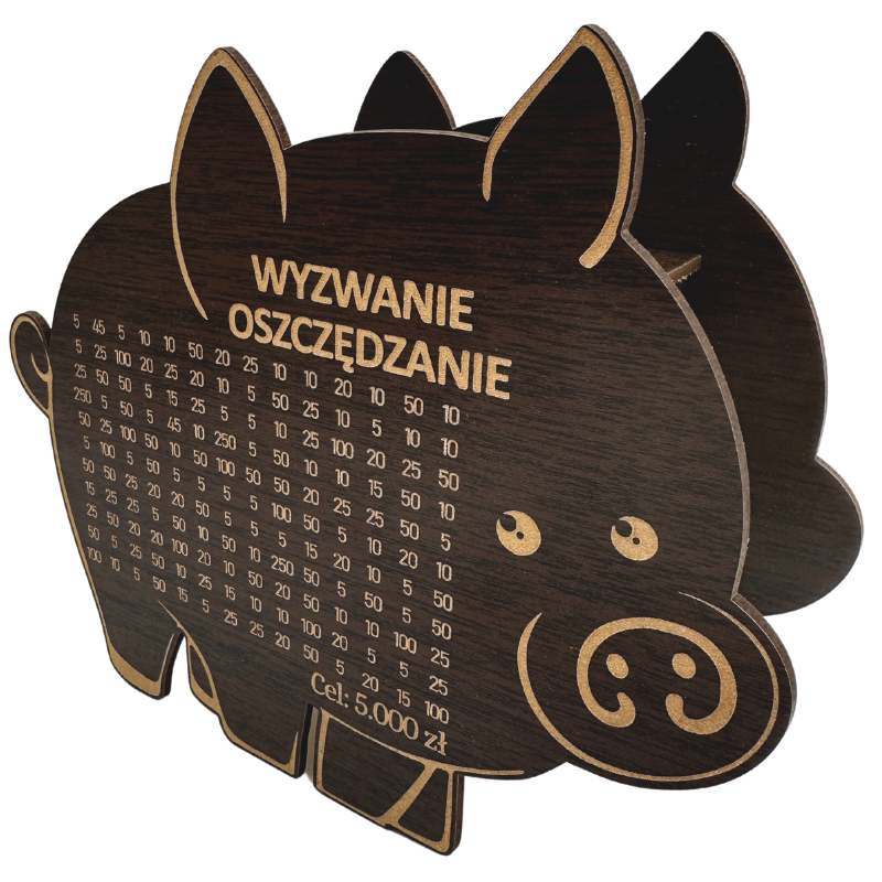 ŚWINKA SKARBONKA WYZWANIE OSZCZĘDZANIE PREZENT UPOMINEK OSZCZĘDNOŚCI WENGE
