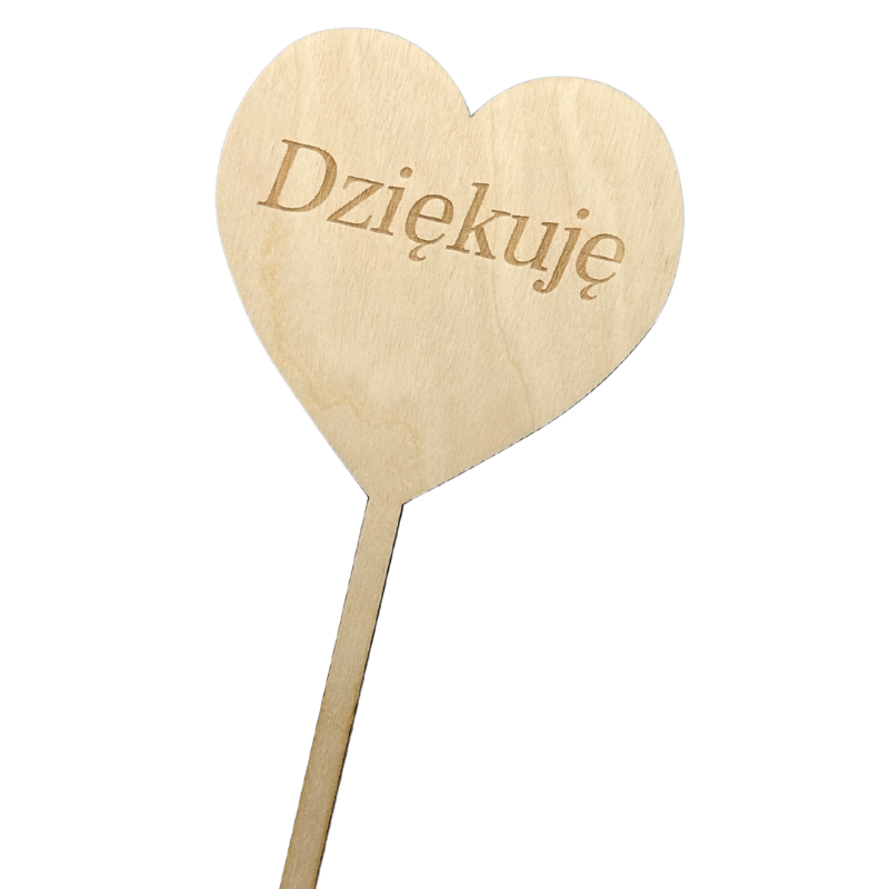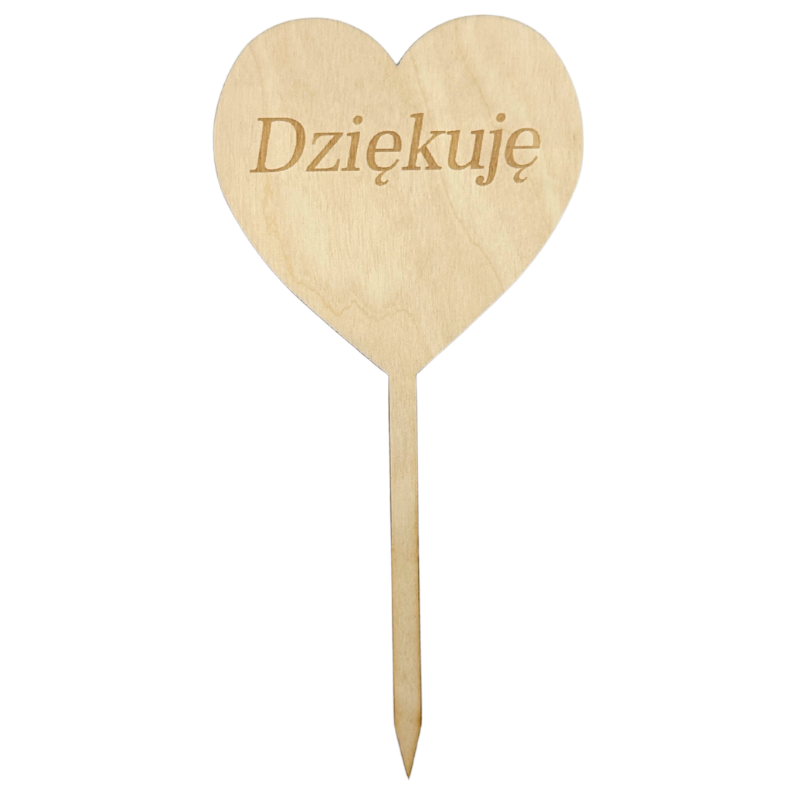 Topper z grawerem „Dziękuję” na serduszku to urocza i wyjątkowa ozdoba, która dodaje osobistego charakteru i wdzięku każdemu prezentowi lub dekoracji. Wykonany z dbałością o detale, grawerowany napis „Dziękuję” umieszczony na delikatnym serduszku nadaje prezentowi wyjątkowego znaczenia i uczucia.