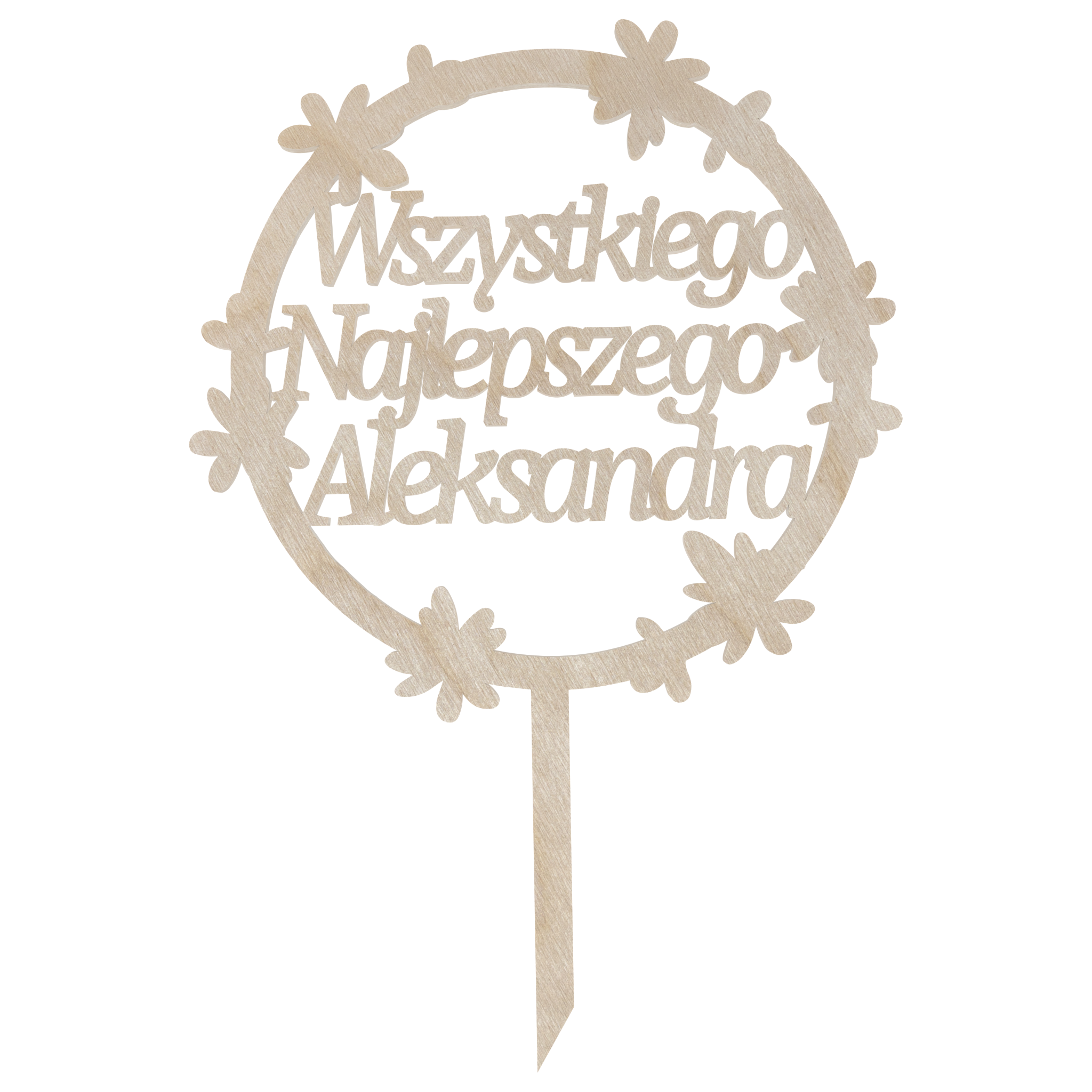 Topper na urodziny personalizowany z drewna sklejki to wyjątkowy dodatek do tortu, który dodaje uroku i oryginalności każdej imprezie. Imię solenizanta dodaje mu osobistego charakteru, sprawiając, że jest to prezent zarówno dekoracyjny, jak i pamiątkowy. Dzięki naturalnemu wykończeniu sklejki, topper pasuje do różnorodnych motywów dekoracyjnych, dodając wyjątkowego uroku i elegancji na urodzinowej uczcie.